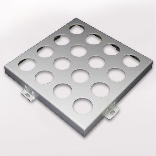 與常規鋁單板相比,沖孔鋁單板更大的特征就是表面形狀各異的沖孔(包括圓孔、方孔、五角星、六邊形孔等),裝飾效果突出,也能夠在一定程度上起到降低噪音的作用。集裝飾性與實用性于一體,沖孔鋁單板在工程裝飾中使用的越來越多。